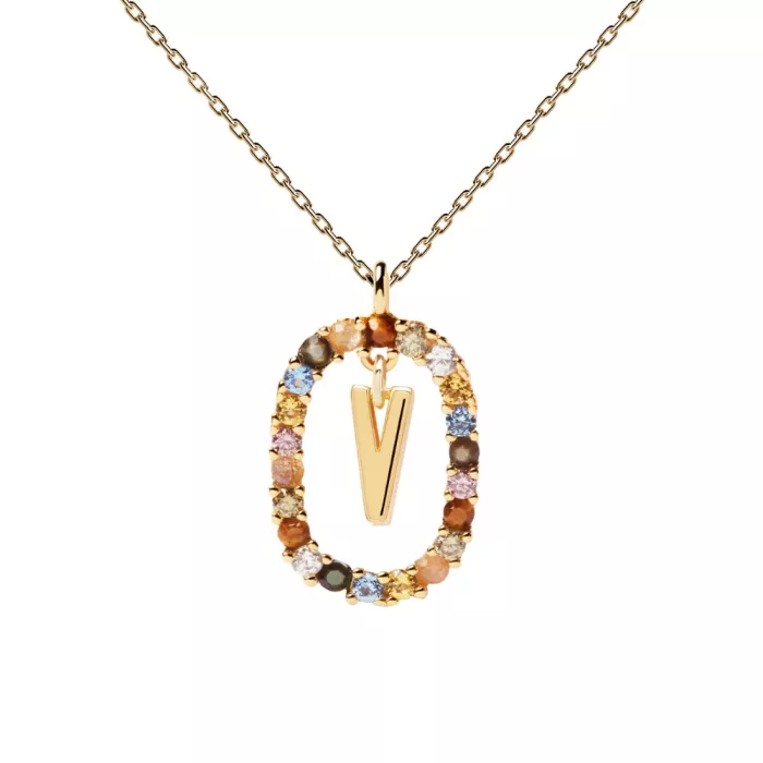 PDPAOLA Letter V Halskette Silber Vergoldet CO01-281-U